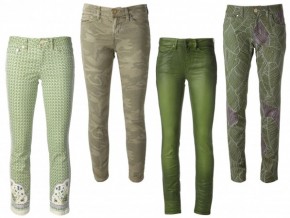 Green reads as a neutral with a tough edge in some cases and can be worn in numerous ways. Pair worn and printed styles with graphic t shirts and a leather jacket for a downtown vibe or dress up richer tones with a blazer and crisp white button down.